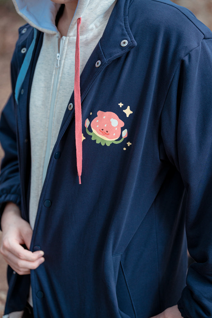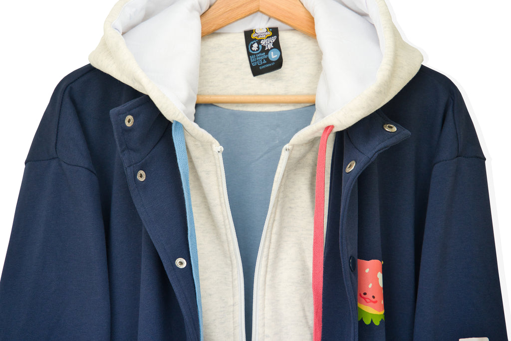 • Inner Zipper, Outer Button Closure, faux double layered look